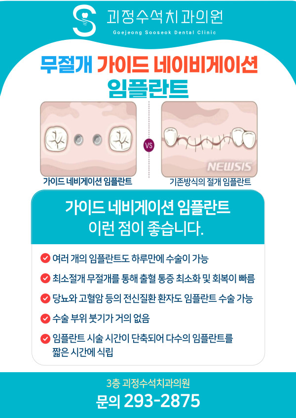 괴정수석치과에서는 환자분들의 통증과 고통을 최소한으로 덜어드리고자 임플란트 식립시 무절개 가이드 네비게이션 임플란트 식립을 시행합니다.